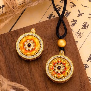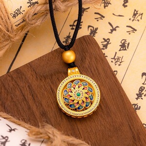 珐琅彩可旋转罗盘吊坠新中式国风古法花丝烧蓝罗盘春季黑绳链挂坠