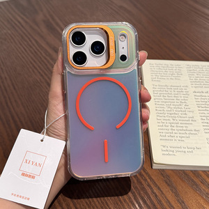适用iPhone17promax手机壳磁吸金属镜头支架苹果16Pro保护壳镭射ip15手机套软胶14/13PM镭射奢华12潮外壳