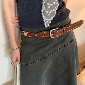 棕色腰带女款复古高级感配裙子牛仔裤带小众民族风咖啡色皮带配饰
