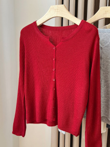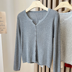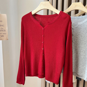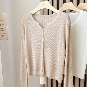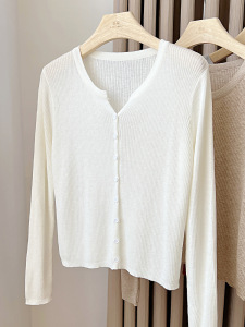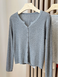 法式气质长袖针织衫女早秋季2025新款宽松显瘦开衫外搭打底衫上衣
