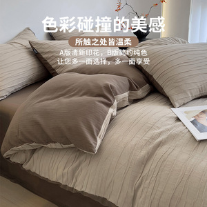 轻奢高级感100新疆全棉水洗棉四件套纯棉2025新款被套床单三件套