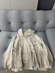 25早秋新款美式复古做旧涂鸦贴纸破坏连帽卫衣女宽松休闲百搭外套