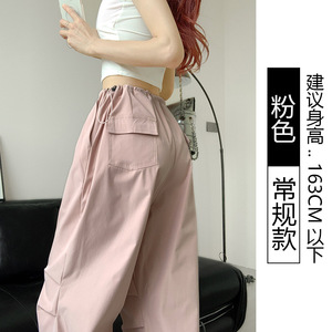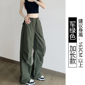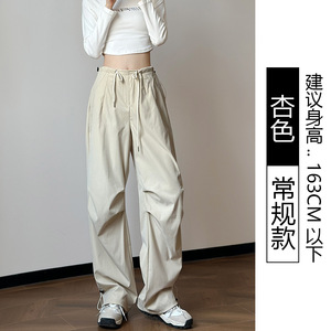 白色工装裤女款秋季薄款2025新款美式街舞裤子跳舞爵士舞降落伞裤
