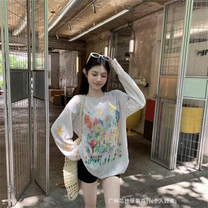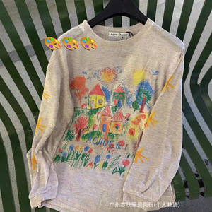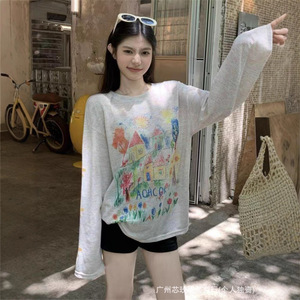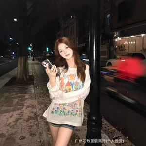 AC正确原2025新款手绘法式涂鸦漫画彩色轻薄防晒罩衫宽松长袖显瘦