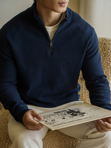 14针520g高捻长绒棉老钱风半开领针织衫男士2025秋冬休闲V领毛衣