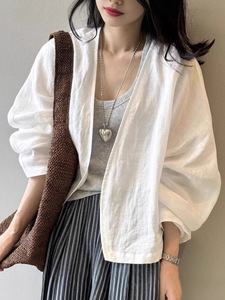 复古白色衬衫外套女夏季慵懒风长袖开衫上衣小个子轻薄宽松防晒衫