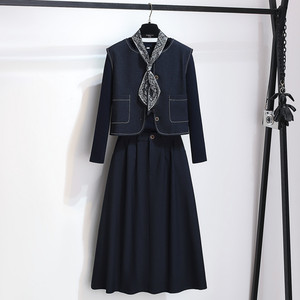 超火马甲长袖T恤半身裙三件套穿搭女2025早秋装新款高级感连衣裙