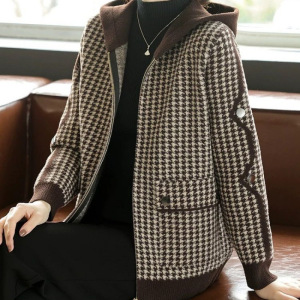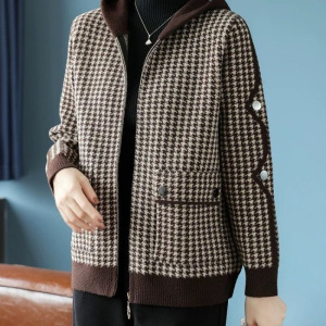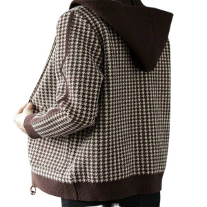妈妈秋装千鸟格呢子外套女洋气新款中老年女春秋冬季时尚上衣开衫