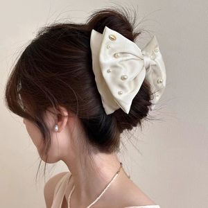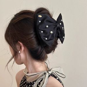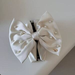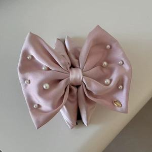 芭蕾风珍珠蝴蝶结缎面抓夹百搭气质发抓女饱满后脑勺盘发夹子发饰