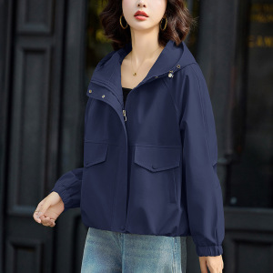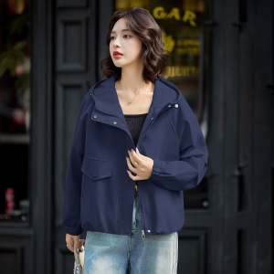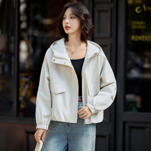 时尚短款外套女2025年春秋新款高级感休闲百搭小个子连帽夹克上衣