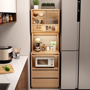 餐边柜夹缝家用厨房置物一体柜靠墙落地窄边柜微波炉收纳复古橱柜