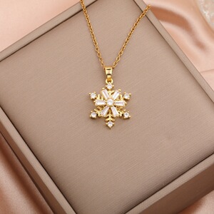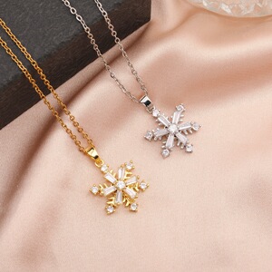 项链女18k雪花可旋转吊坠锆石吊坠百搭风速卖通外贸时尚女士项链