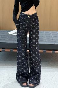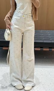 2025早秋新款美式复古提花直筒牛仔裤女高腰宽松阔脚裤休闲拖地裤