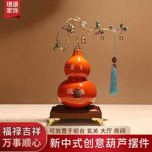 创意装饰摆件珐琅彩陶瓷葫芦摆件客厅酒柜玄关博古架办公室装饰