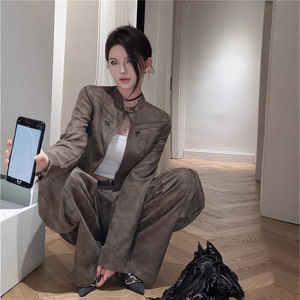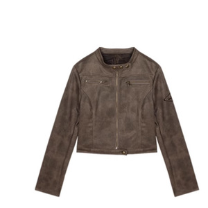 美式复古秋季短款机车服外套女春秋2025新款麂皮咖色帅酷气质夹克