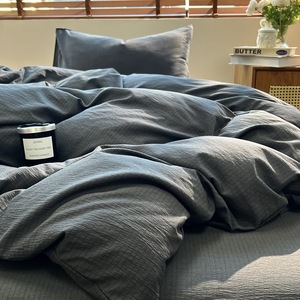 纯色简约木棉云感纱纯棉四件套云感纱学生宿舍三件套好睡针织棉