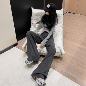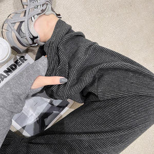 韩版舒适高腰休闲裤女秋季2025新款条纹百搭阔腿裤高级感显瘦裤子
