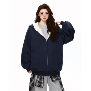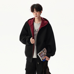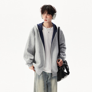 美式新款撞色连帽卫衣男秋季潮牌美式高街宽松休闲情侣款上衣外套