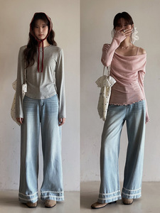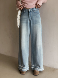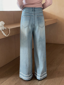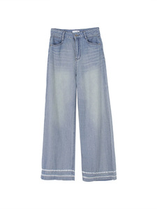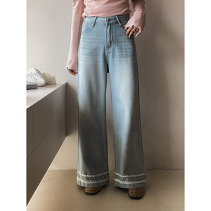 【歌铭】设计感刺绣花边牛仔裤女秋季新款高腰显瘦直筒裤子W061C