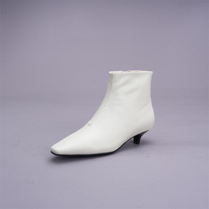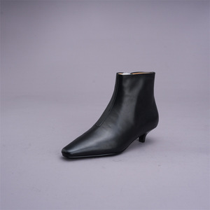 2025秋冬黑色韩版细跟新款气质方头侧拉链中跟时装靴