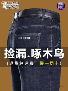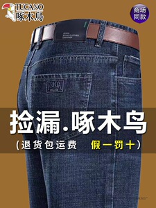 2025啄木鸟男士牛仔裤男春秋新款弹力中年男裤商务休闲高腰直筒裤