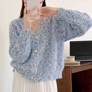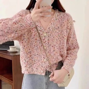 秋冬新款小香风气质短款针织开衫女韩版甜美彩点V领毛衣外套上衣
