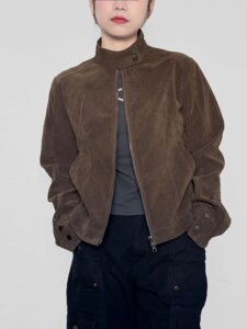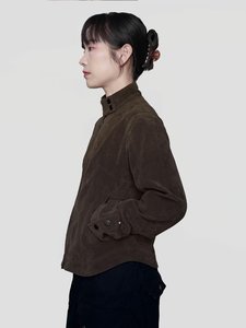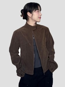 美式复古街头痞帅风棕色美拉德立领夹克时尚潮流春秋微短外套男女