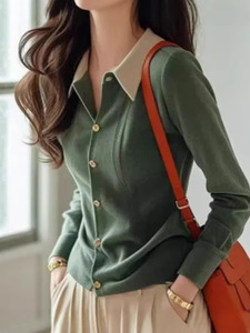2025年秋冬设计感小众撞色POLO领针织衫女独特别致单排扣内搭衬衫