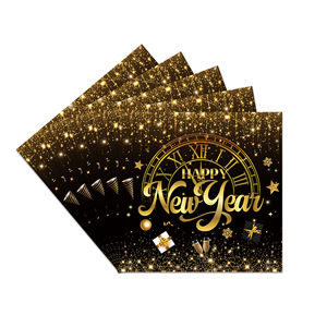 黑金新年快乐派对装饰餐具春节跨年布置一次性纸盘纸杯桌布用品