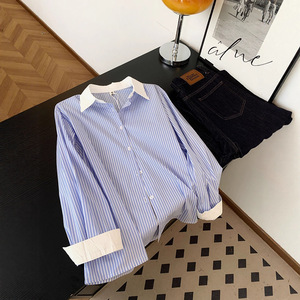 广州十三行高货爆款~撞色长袖衬衫新款春宽松慵懒风外搭休闲衬衣