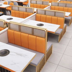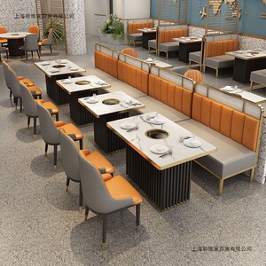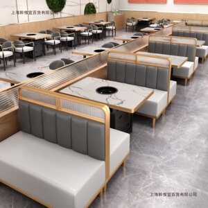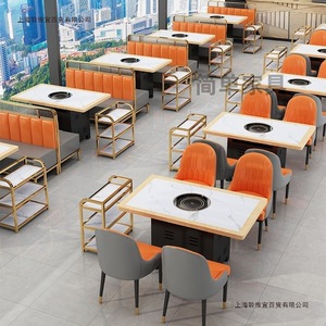 岩板大理石火锅桌子电磁炉一体商用卡座实木无烟沙发烤肉桌椅组合