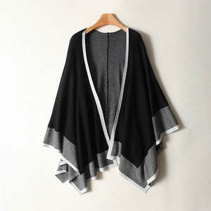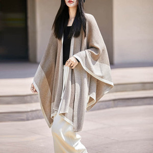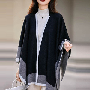 轻奢高级感撞色旅游针织开衫韩国chic秋冬羊毛混纺斗篷披肩外套