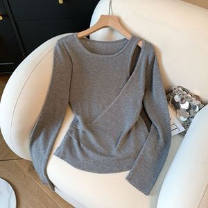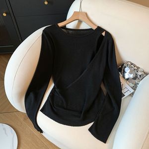 广州十三行高货爆款~露肩圆领套头长袖针织衫修身显瘦秋季上衣女