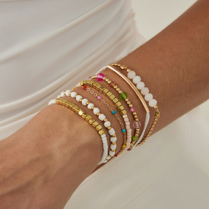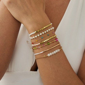欧美跨境波西米亚不规则串珠米珠手链套装 ins风彩色水晶弹力手饰