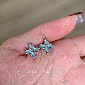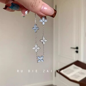 大象灰蓝色小香风四叶草细款项链女轻奢小众清冷感爆闪花朵