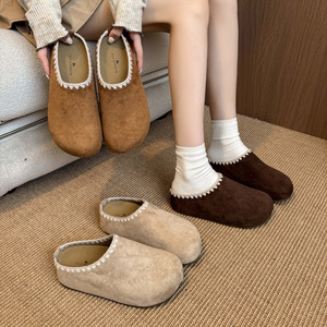 厚底勃肯鞋包头半拖鞋女外穿2025春季复古新款复古丑萌半托穆勒鞋