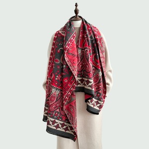 女披肩秋冬新款仿羊绒腰果花围巾女外贸气质长款流苏双面围脖两用