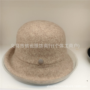冬日新款100%绵羊毛水桶帽秋冬加厚保暖卷边渔夫帽休闲百搭盆帽