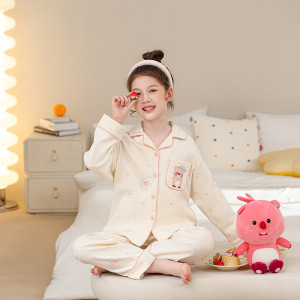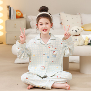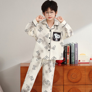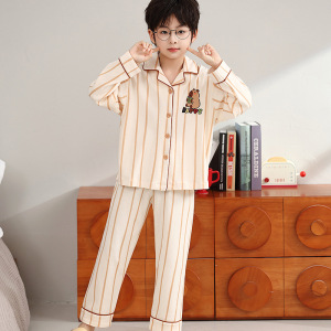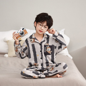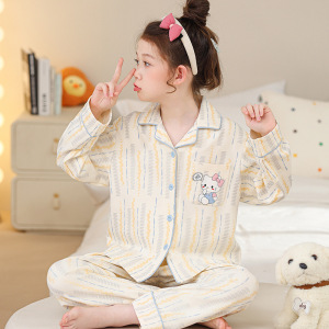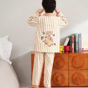 男童睡衣春秋韩版开衫两件套大童女孩青少年2025新款儿童装家居服