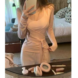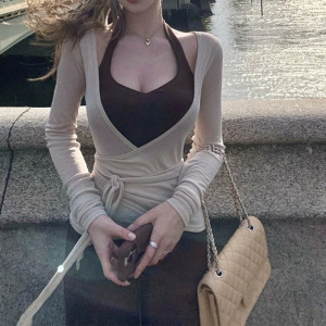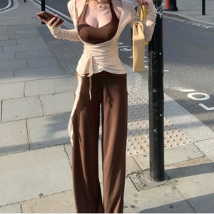 白女松弛系列2.0 高级感挂脖吊带背心/休闲裤子/绑带开衫女三件套