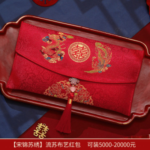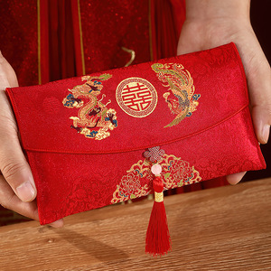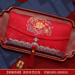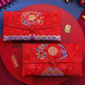改口红包一对结婚婚礼父母敬茶费喜字布艺万元大号红