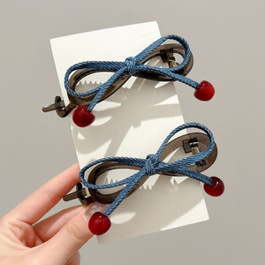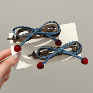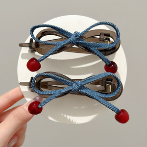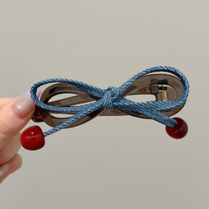 樱桃红珠扭扭夹女高级感牛仔蝴蝶结一字抓夹头饰后脑勺盘发卡发夹