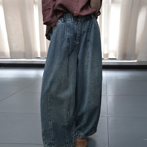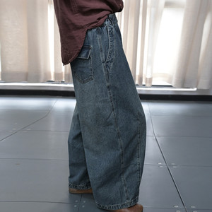 素凡卡早秋新款复古松紧腰创意拼接高腰宽松显瘦阔腿牛仔裤51285