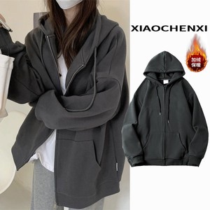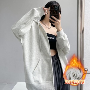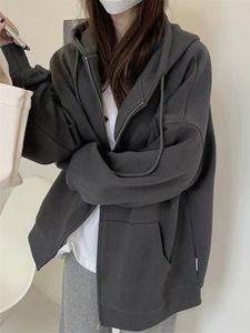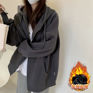 卫衣外套女春秋冬季韩版慵懒风连帽拉链开衫上衣2025新款加绒