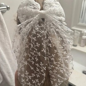 精致蕾丝设计蝴蝶结飘带弹簧夹优雅公主发夹浪漫婚礼季派对头饰