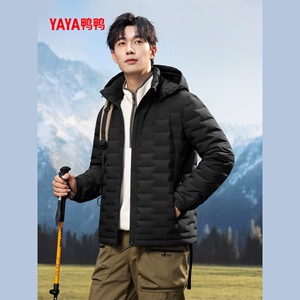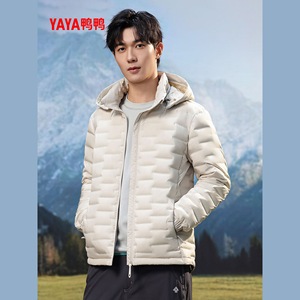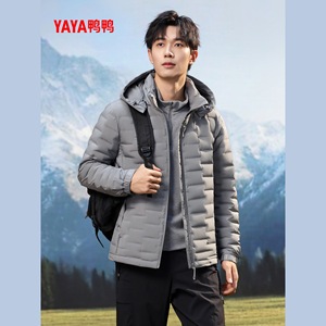 鸭鸭轻薄羽绒服男士2025年秋冬新款短款保暖时尚可脱卸帽外套J