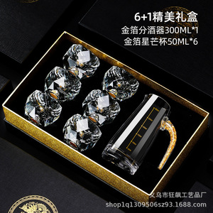 金箔星芒50ml酒杯6+1金箔300ml分酒器-礼盒礼袋装