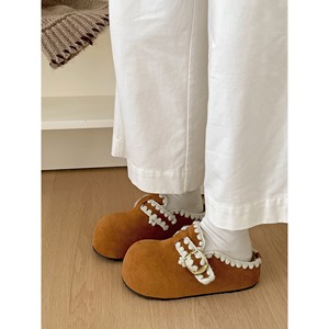 复古棕色厚底包头拖鞋女外穿2025新款秋季配裙子百搭勃肯半拖鞋子