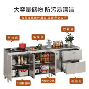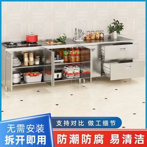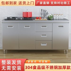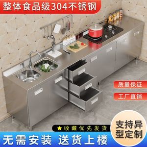 304整体不锈钢厨房橱柜特厚简易碗柜灶台一体农村储物家用小户型