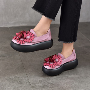 头层牛皮复古文艺大花朵厚底松糕单鞋女2025秋季新款真皮低帮女鞋